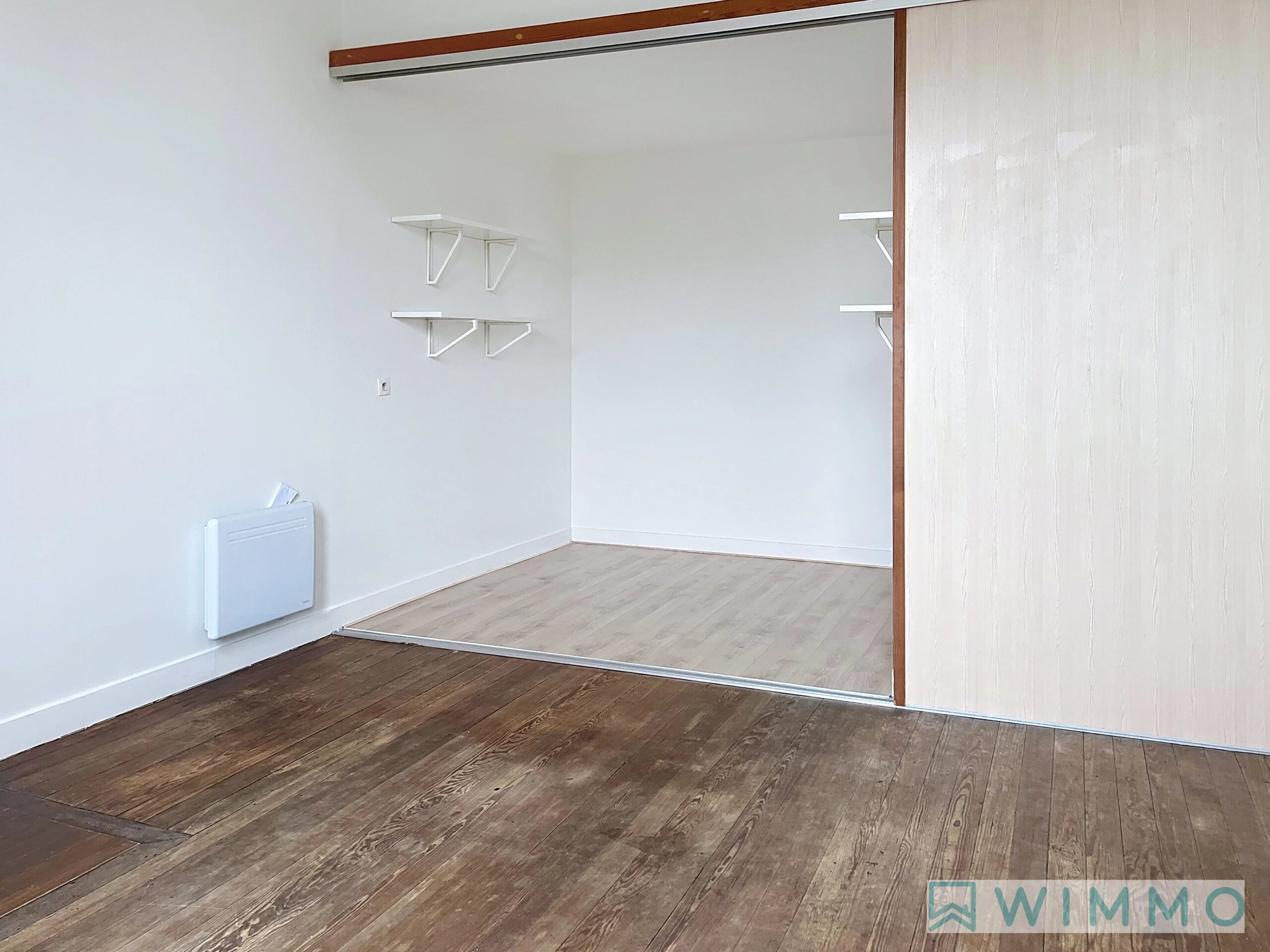Cet appartement comprend une entrée avec placard de rangement, un séjour avec kitchenette aménagée (plaques), un coin nuit, une salle de bains et un wc.