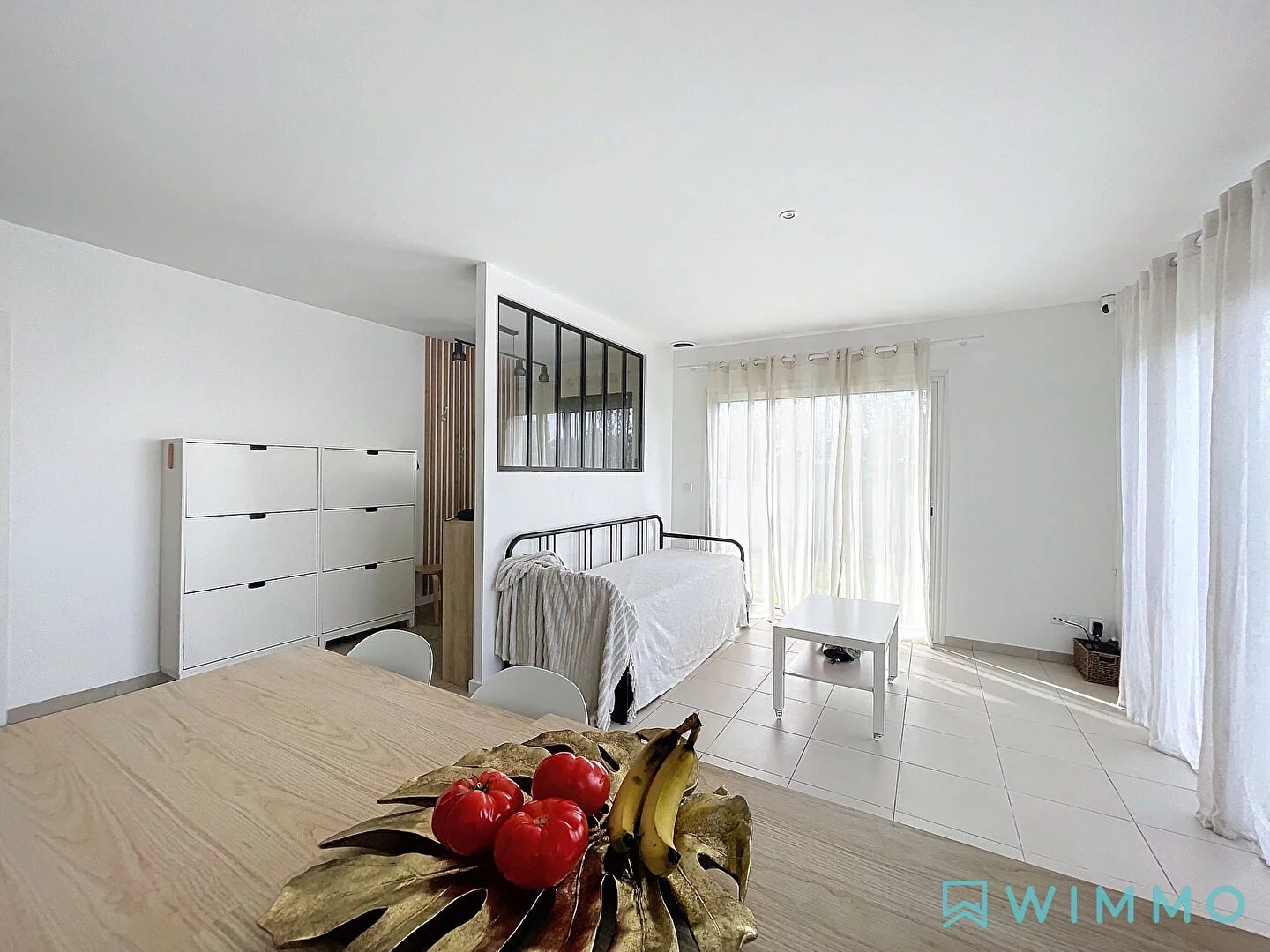 MERIGNAC, Découvrez GABY : Maison meublée à louer offrant une situation idéale à proximité immédiate du bus 1 et du tram A, et à seulement 15 min à pied de Mérignac centre. Des commerces, tabac-presse, pharmacies et restaurants sont accessibles à pied, tout comme deux écoles maternelles/primaires. Cette maison de plain-pied, non-mitoyenne, offre 85m2 habitables. Elle est équipée d'une climatisation réversible dans toutes les pièces et bénéficie d'une isolation neuve. À l'intérieur, on trouve une entrée avec des rangements , un salon avec une cuisine ouverte aménagée et équipée (four, micro-ondes, réfrigérateur avec congélateur, lave-vaisselle, plaque à induction). Il y a également deux chambres avec dressings, un bureau avec bibliothèque, et une salle de bains. Un cellier avec rangements et une machine à laver complètent l'aménagement intérieur. À l'extérieur, un jardin de 150m2 comprend un cabanon sécurisé de 6m2 avec rangement pour vélos. Il y a également une terrasse en pierre et une allée de garage permettant le stationnement sécurisé d'un véhicule (avec prise de recharge pour véhicule électrique). Stationnement facile dans l'impasse. Disponible dès maintenant.