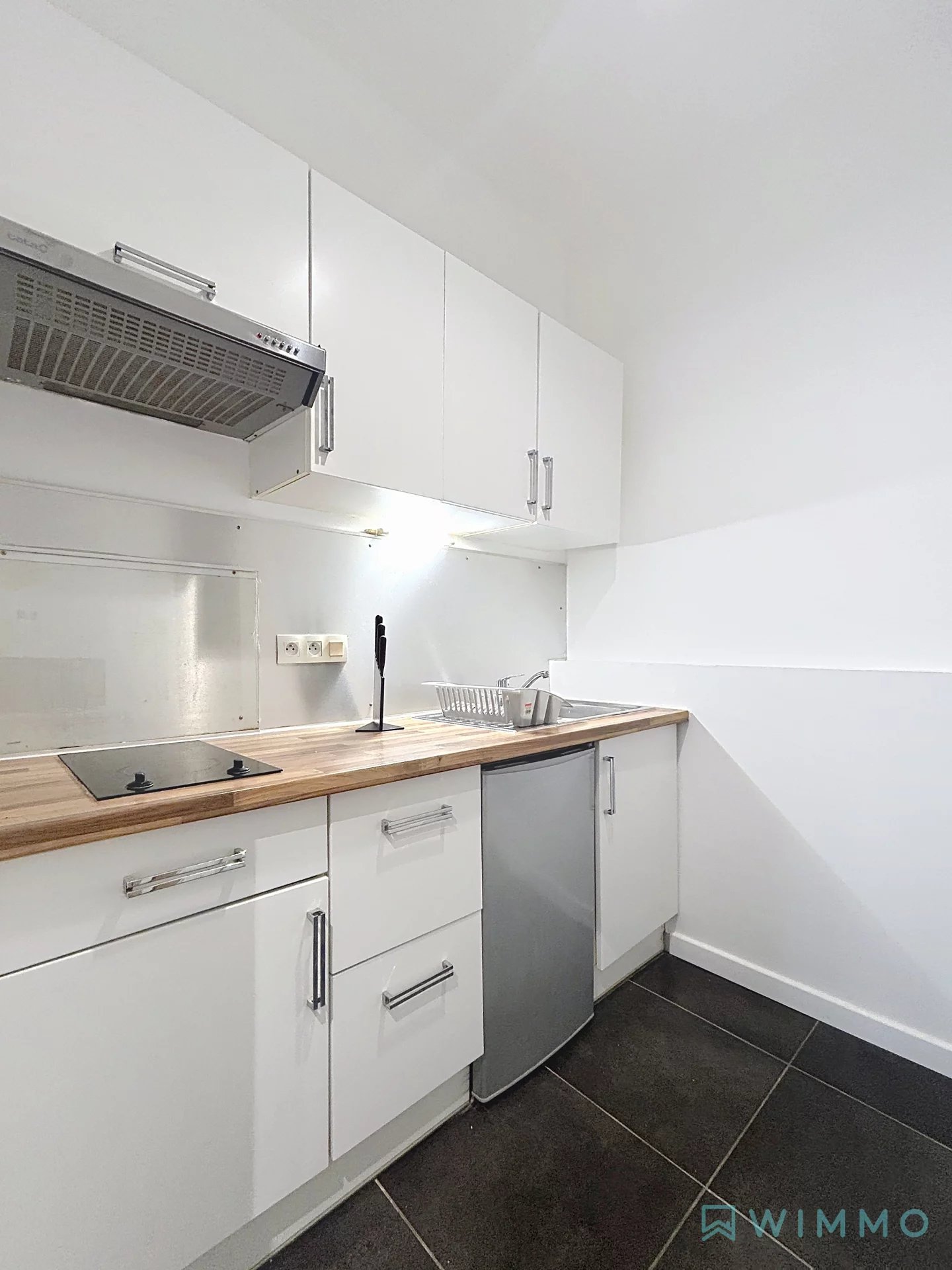 Cet appartement de 38.58m² se compose d'une entrée, un séjour, une cuisine aménagée et équipée (plaque et hotte ) donnant sur une cour intérieure privative, une chambre et une salle d'eau avec wc.